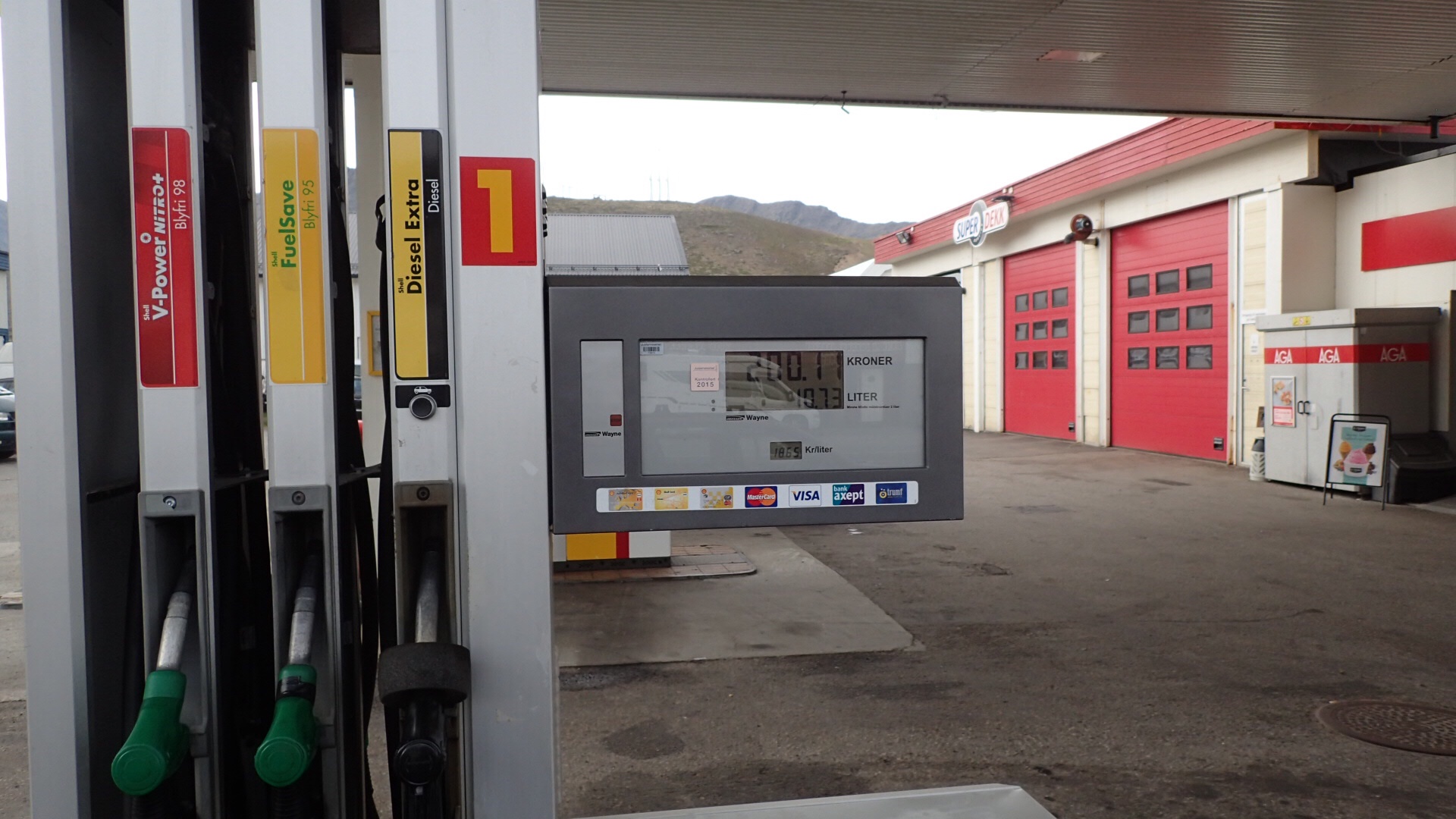 14.49kr literen. De ved godt de er den ENESTE benSintank inden for 90km på vej til Nordkapp.